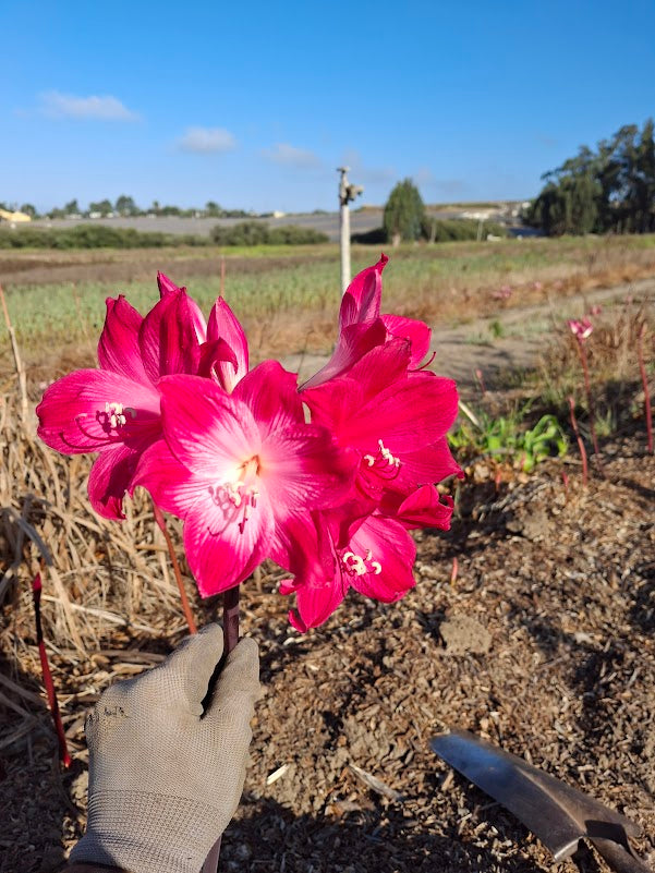 Amaryllis Belladonna are highly recommended for those with mild winters and relatively dry summers. Folks in other climates can grow them in large pots if they are willing to do the extra work of moving them seasonally. They are easily grown outside in zones 8-10 with mulch. Water occasionally whenever they are not receiving adequate rainfall. For customers in the Southeast and Midwest I recommend Lycoris rather than Amaryllis Belladonna.